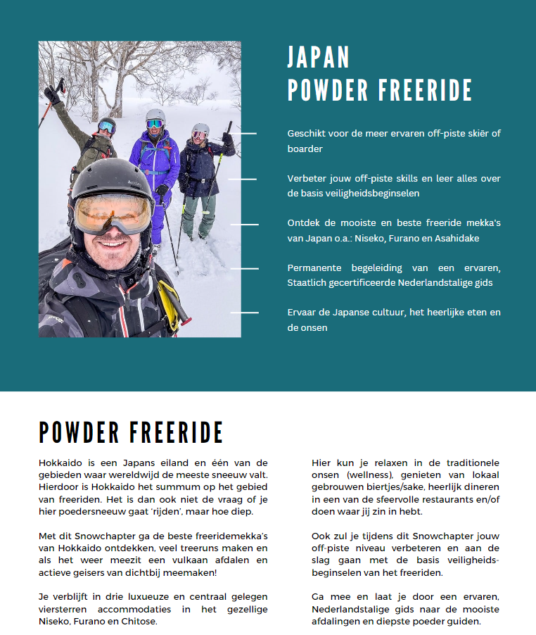 JAPAN POWDER FREERIDE inhoud & PROGRAMMA VERBLIJF & GEAR & NIVEAU DATA & PRIJZEN & VIDEO INschrijven Video afspelen